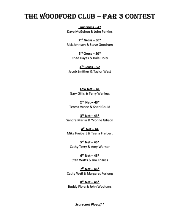 The Woodford Club’s Par 3 Tournament was held July 25th and it brought out some great talent to the course.
