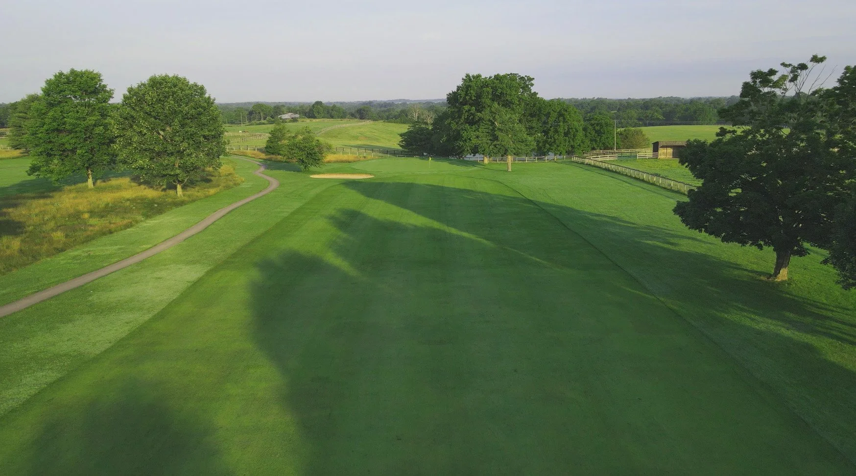 One of The Woodford Club’s most scenic holes, this par 5 runs alongside a picturesque horse farm—don’t be surprised if a few curious thoroughbreds line up at the fence to watch your swing. A well-placed tee shot is key, avoiding the bunker on the right side of the fairway. From there, long hitters may eye the green, which sits dramatically downhill, for a chance at reaching in two. For most, a solid second shot to the landing area sets up a manageable, slightly uphill approach. With a few straight swings, this hole presents a real scoring opportunity—and a memorable view to go with it.