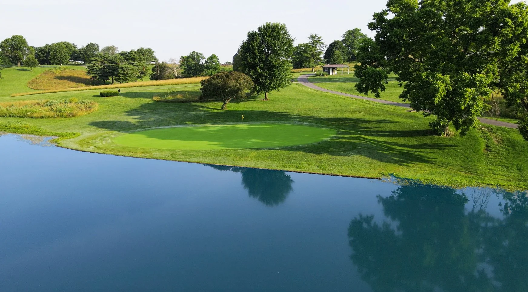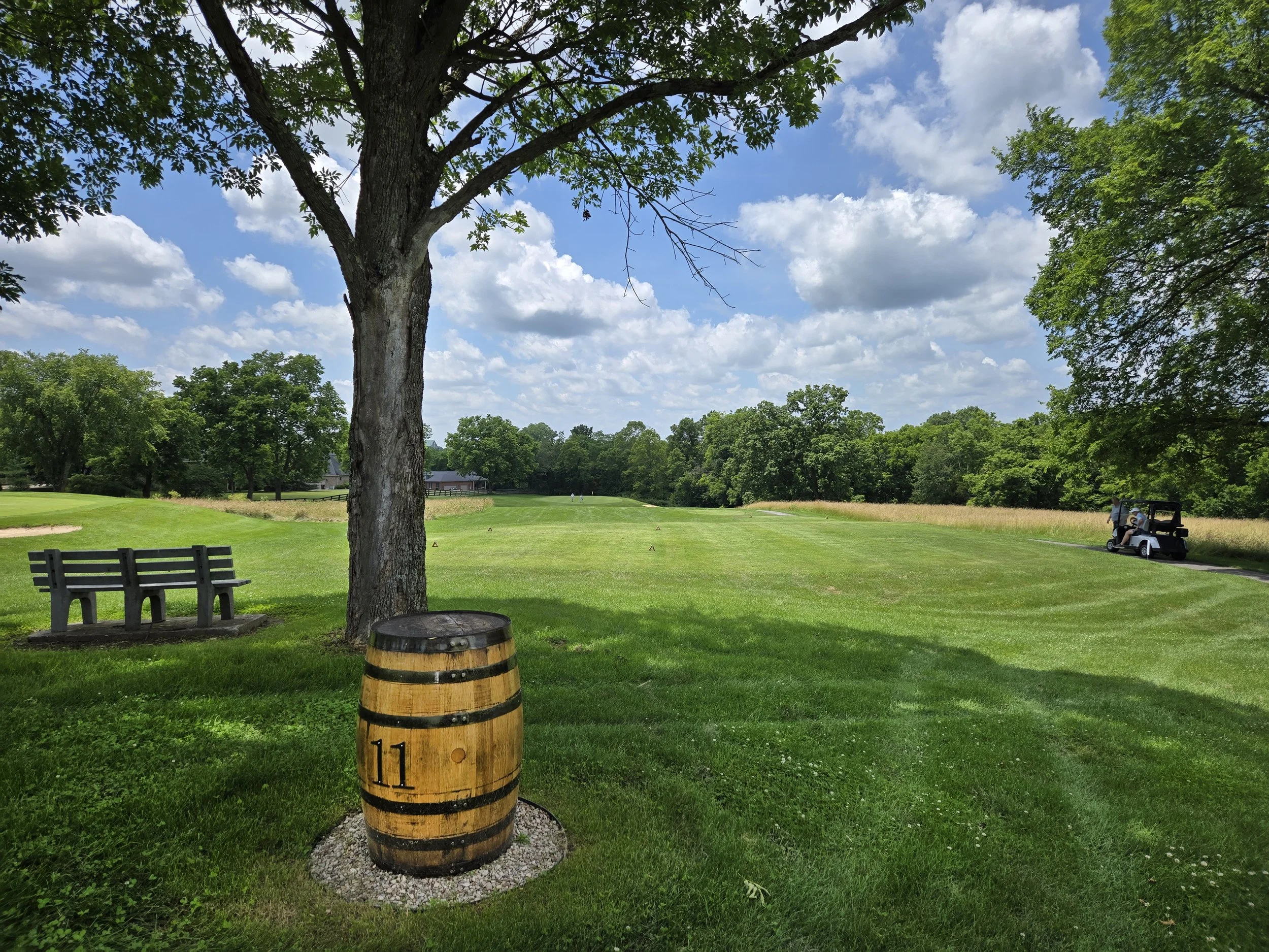 The closing hole at The Woodford Club is a beauty—and a bit of a puzzle. From an elevated tee, players launch their drive over the lake below to an equally elevated fairway. But the real challenge lies in the approach: a tall, menacing tree guards the right side, making any angle from that side a tough ask. The ideal drive hugs the left edge of the fairway, setting up a clean look at the green. It’s not a long hole, so birdie is definitely in play—but only if you play it smart. A memorable finish to a memorable back nine.